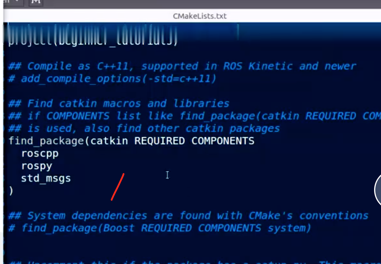如:catkin_create_pkg beginner_tutorials std_msgs rospy roscpp