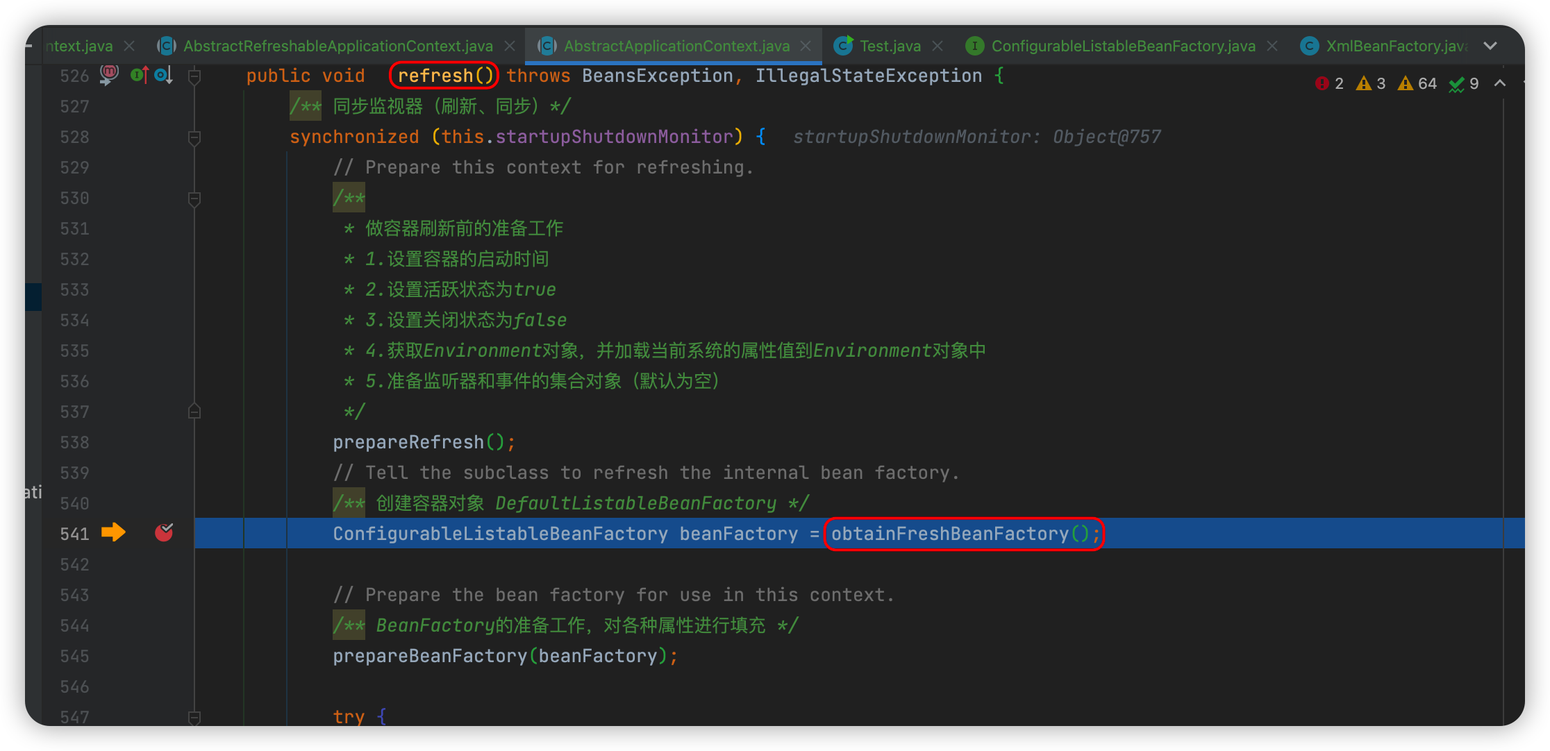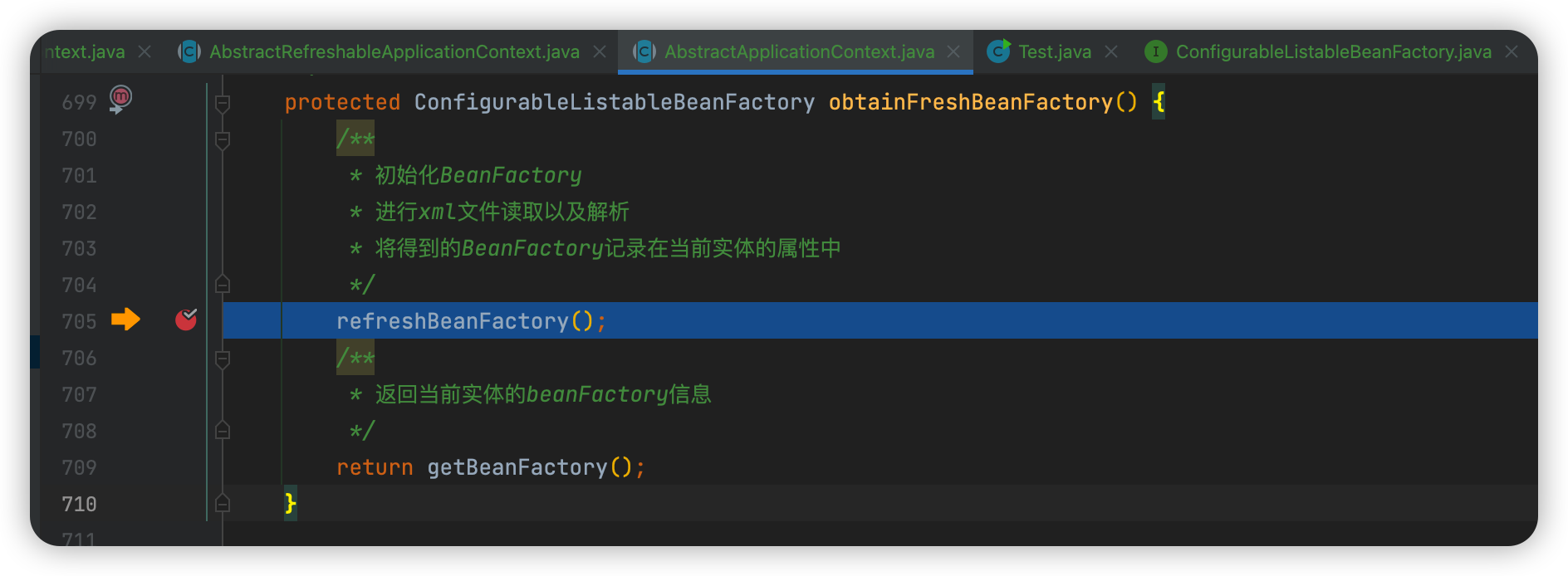 进入方法obtainFreshBeanFactory(),开始Spring容器的创建