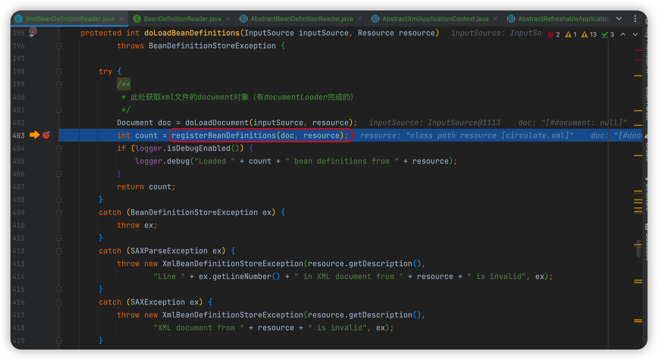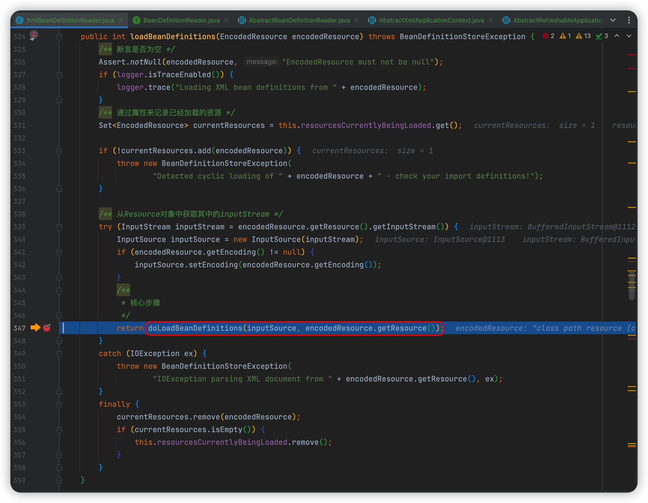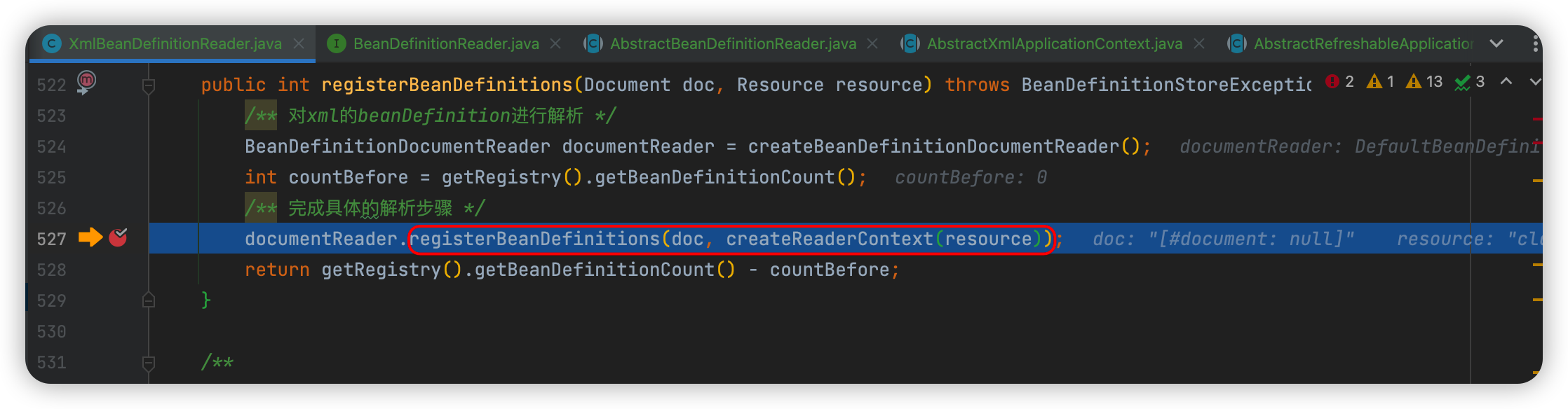 终于看到了咱们的doLoadBeanDefinitions() ,正式开始读取+解析标签🏷️的逻辑