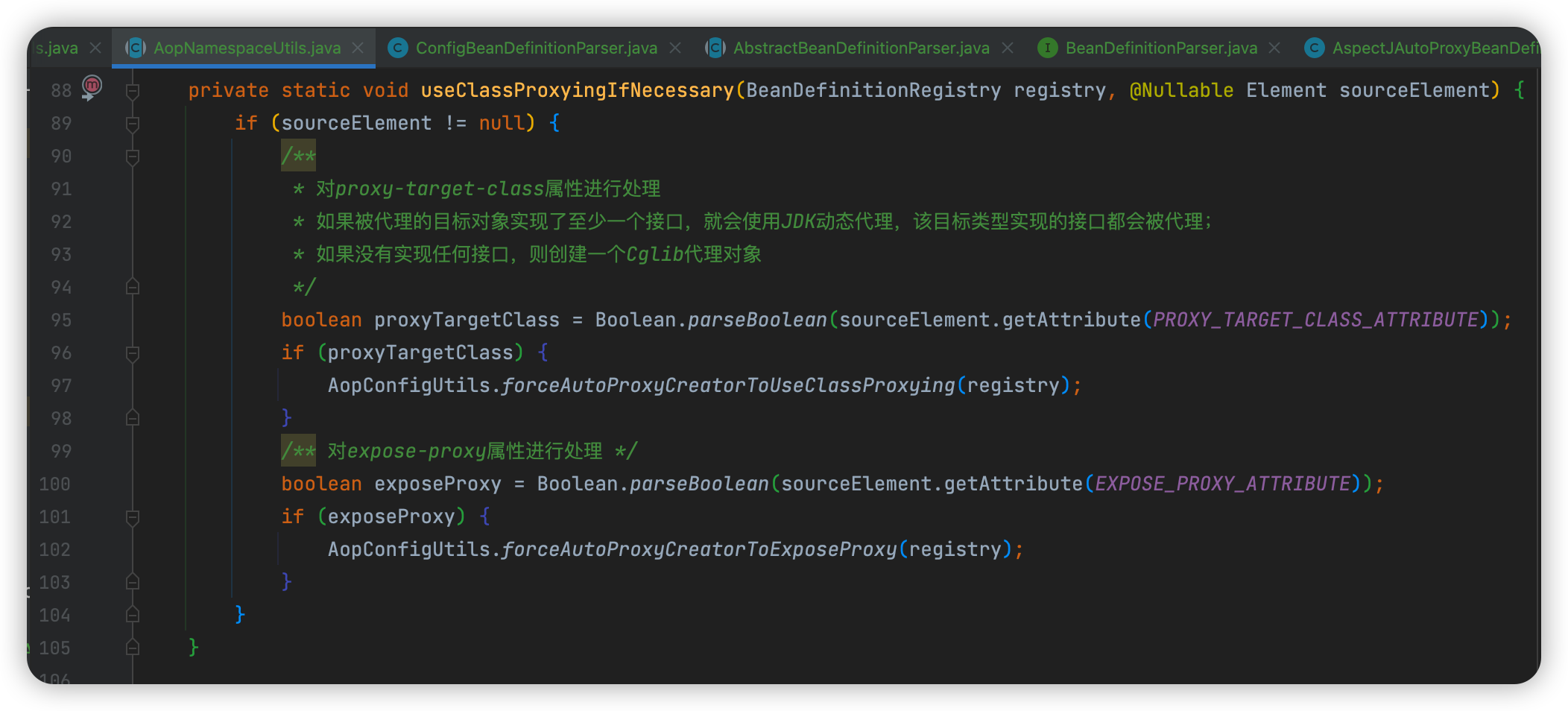 方法中主要是对proxy-target-class和expose-proxy这两个属性进行处理