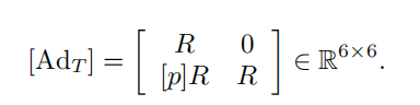 上式表示了两个旋量之间的变换,通过伴随变换矩阵Ad进行连接。