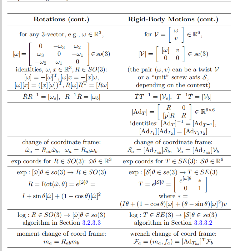 不过学完这一章,也算是把包括旋量在内的整个刚体运动的不同表示形式了然于心了,而不仅仅是两个矩阵下标相同就合并这么简单。