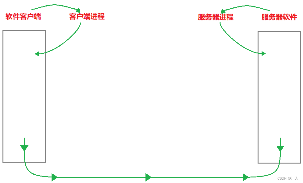 所以通讯的时候,并不是两个机器在通讯,而是二者上层的软件在通讯。而对应的软件就是程序员所写的对应的代码,编译所形成的二进制程序。所以准确的来说,因为客户端也是需要打开才哪能申请数据、接收数据。
