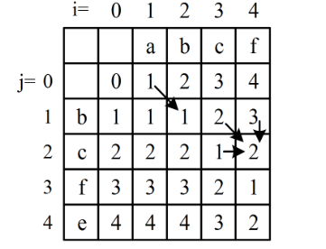 for i in range(1,m+1):for j in range(1, n+1):if a[i]==b[j]: dp[i][j] = dp[i-1][j-1]else:dp[i][j]=min(min(dp[i-1][j], dp[i][j-1]) , dp[i-1][j-1])+1