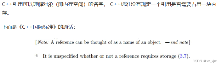 说在前头,纯属个人理解,关于引用是否有地址,实际上并没有一个很统一的说法, C++标准没有规定一个引用是否需要占用一块内存。
