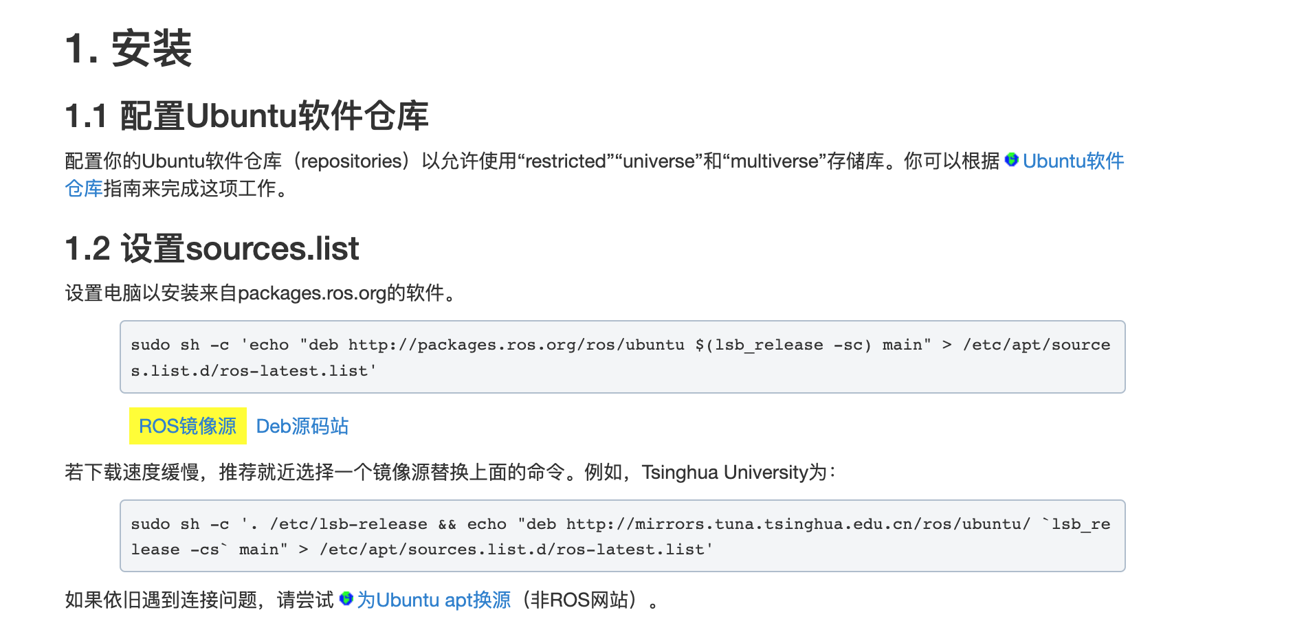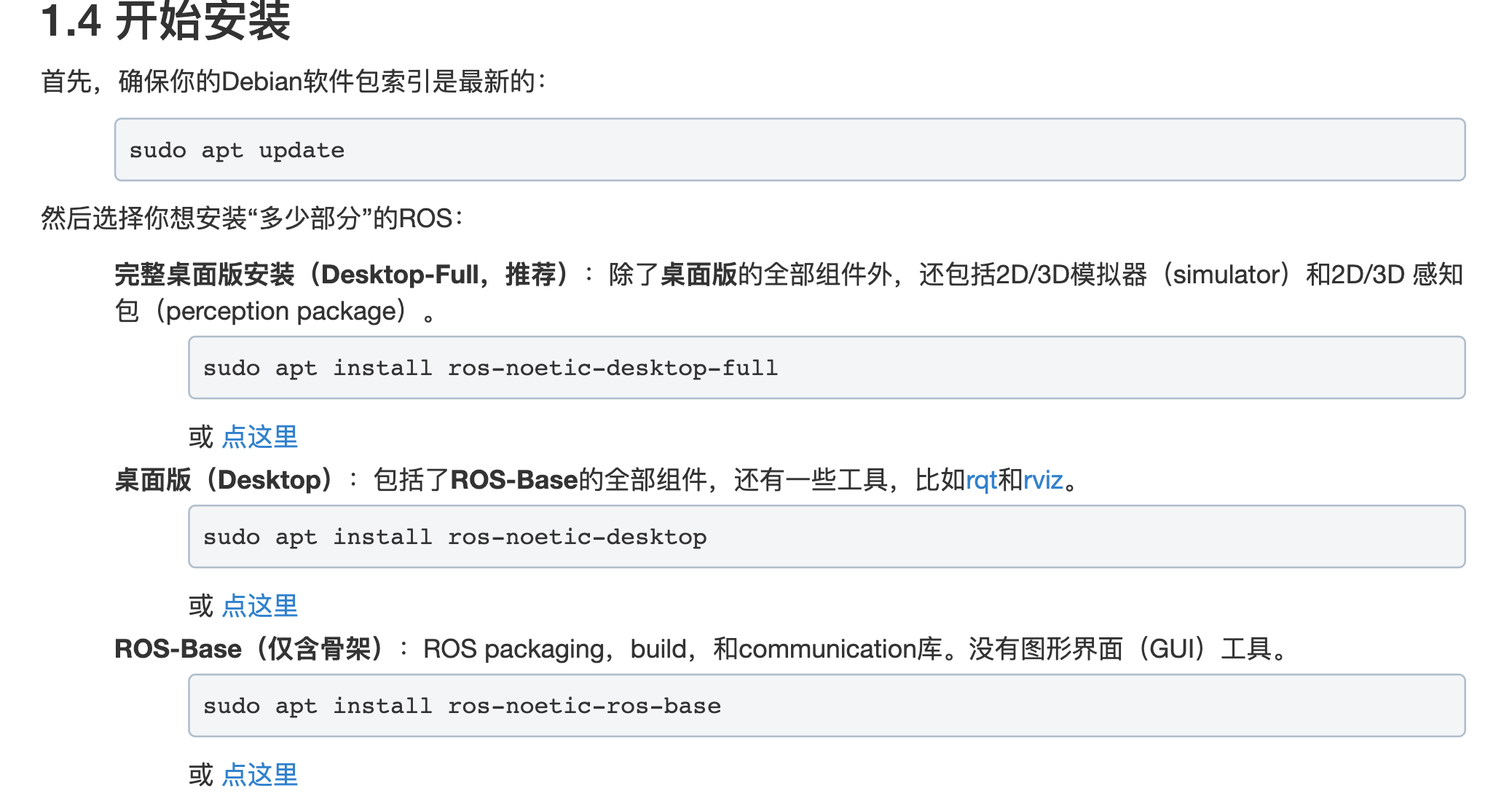 在Ubuntu上安装ROS:http://wiki.ros.org/cn/noetic/Installation/Ubuntu