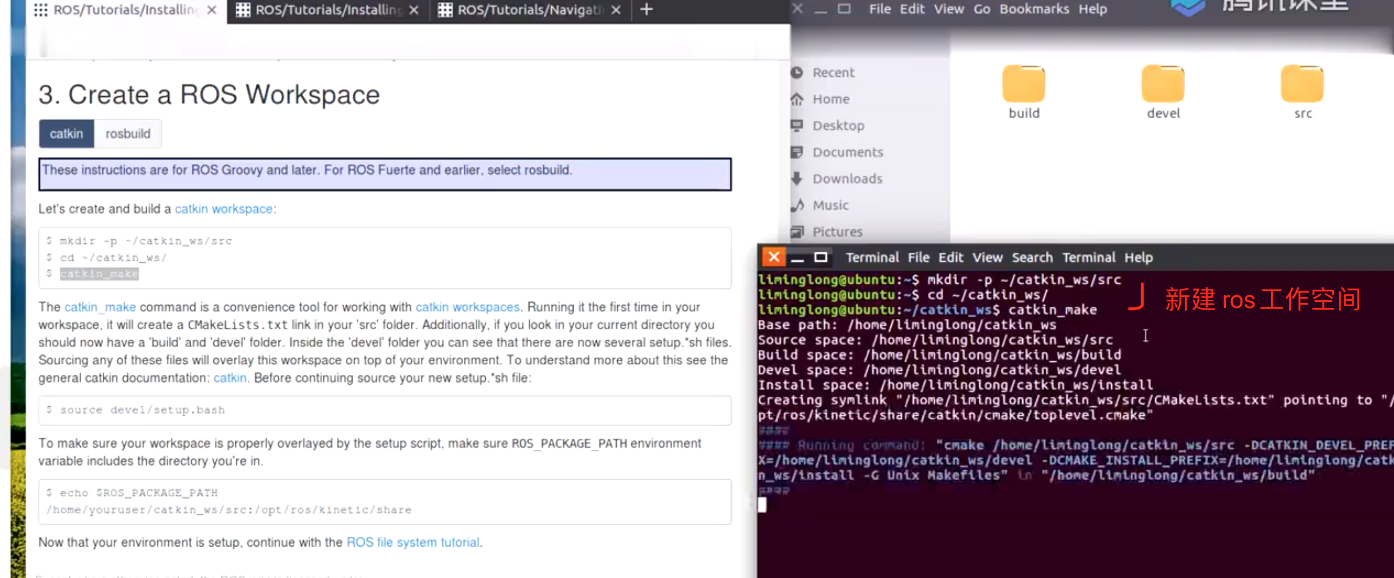 本教程介绍如何使用 roscreate-pkg 或 catkin 创建新软件包,以及使用 rospack 列出软件包依赖项。