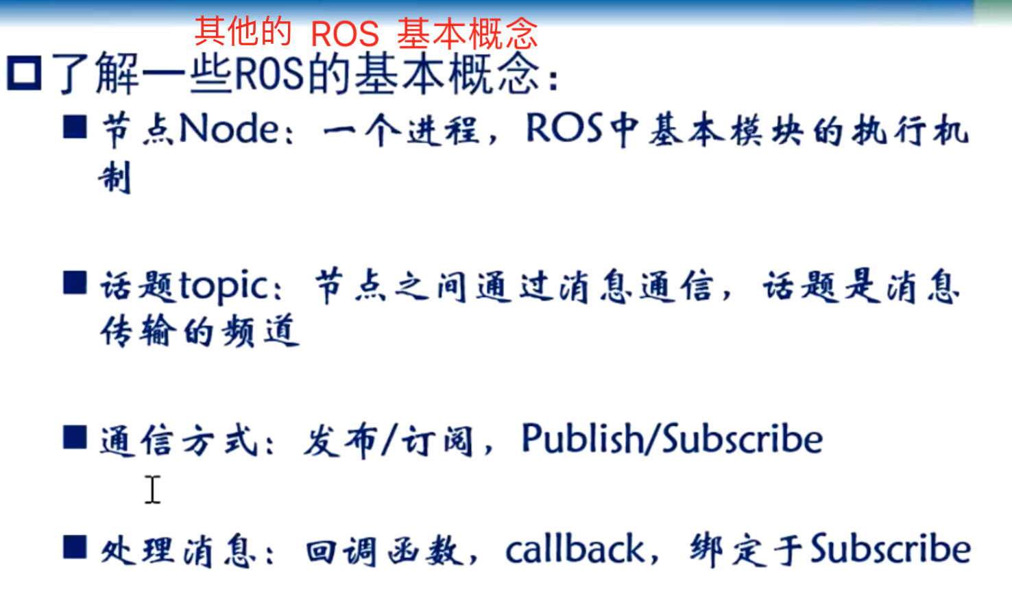 更多客户端 API 教程可以在相关包中找到(roscpp、rospy、roslisp)