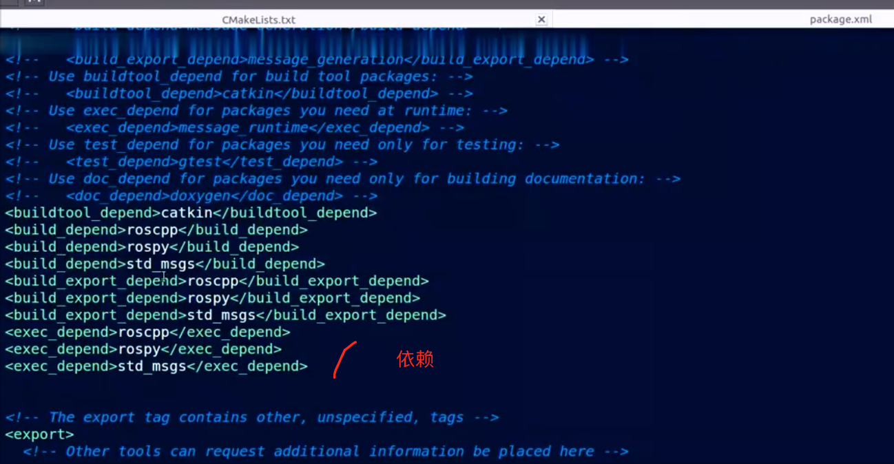如:catkin_create_pkg beginner_tutorials std_msgs rospy roscpp