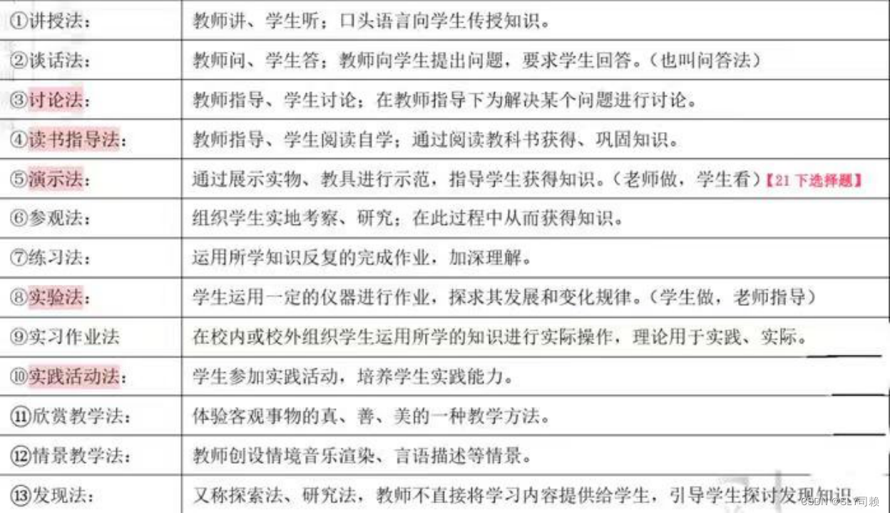 1、我国常用的教学方法【背,给材料知道是哪种】