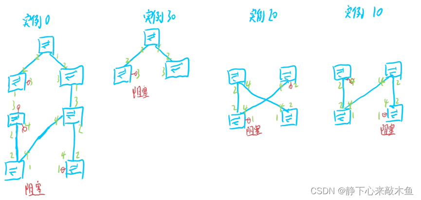 实例10中阻塞端口为LSW1的g0/0/1,LSW4的G0/0/2