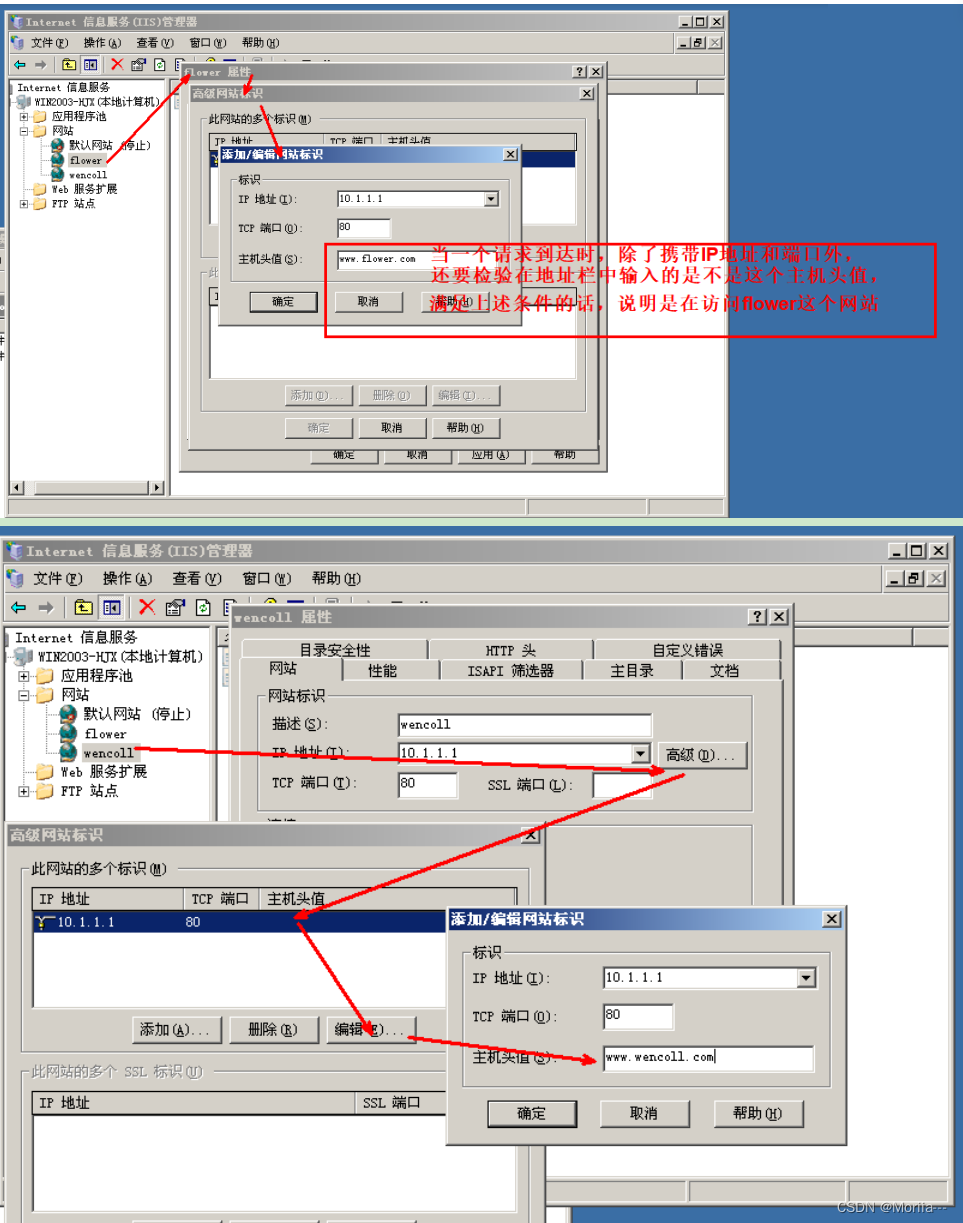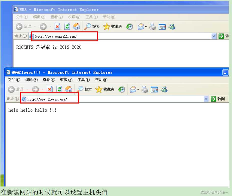 两个网站绑定不同的域名(主机名)
