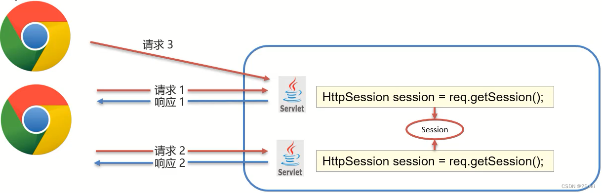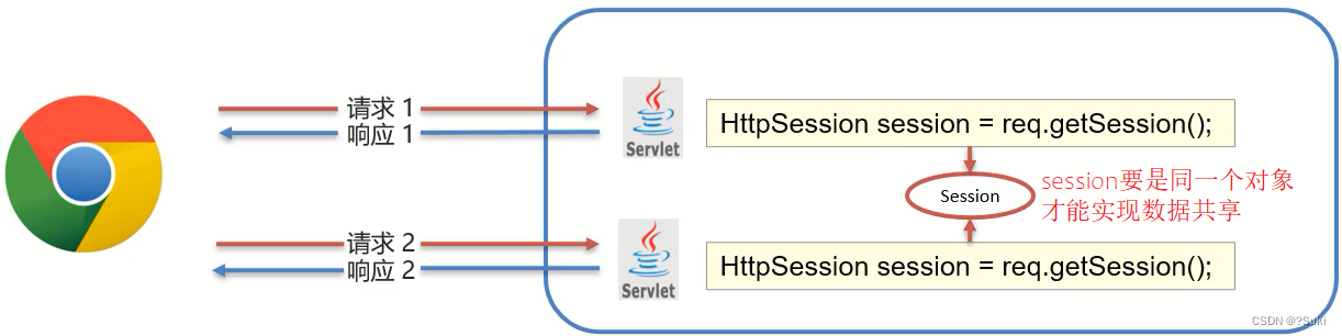 Session要想实现一次会话多次请求之间的数据共享,就必须要保证多次请求获取Session的对象是同一个。
