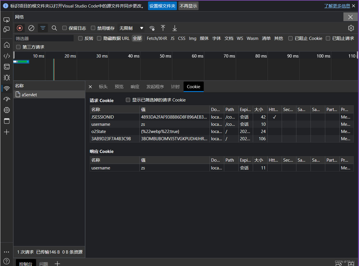 (4)启动测试,在浏览器查看Cookie对象中的值