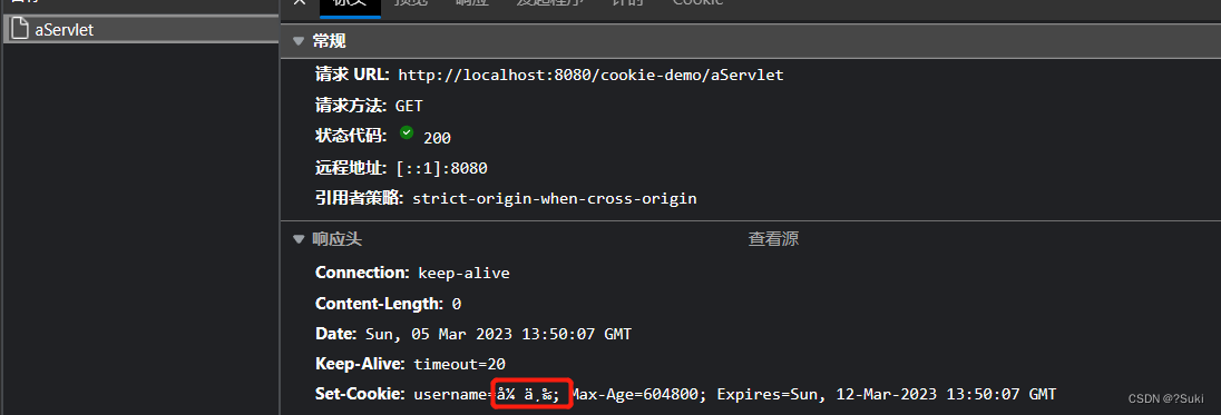(1)访问AServlet对应的地址http://localhost:8080/cookie-demo/aServlet