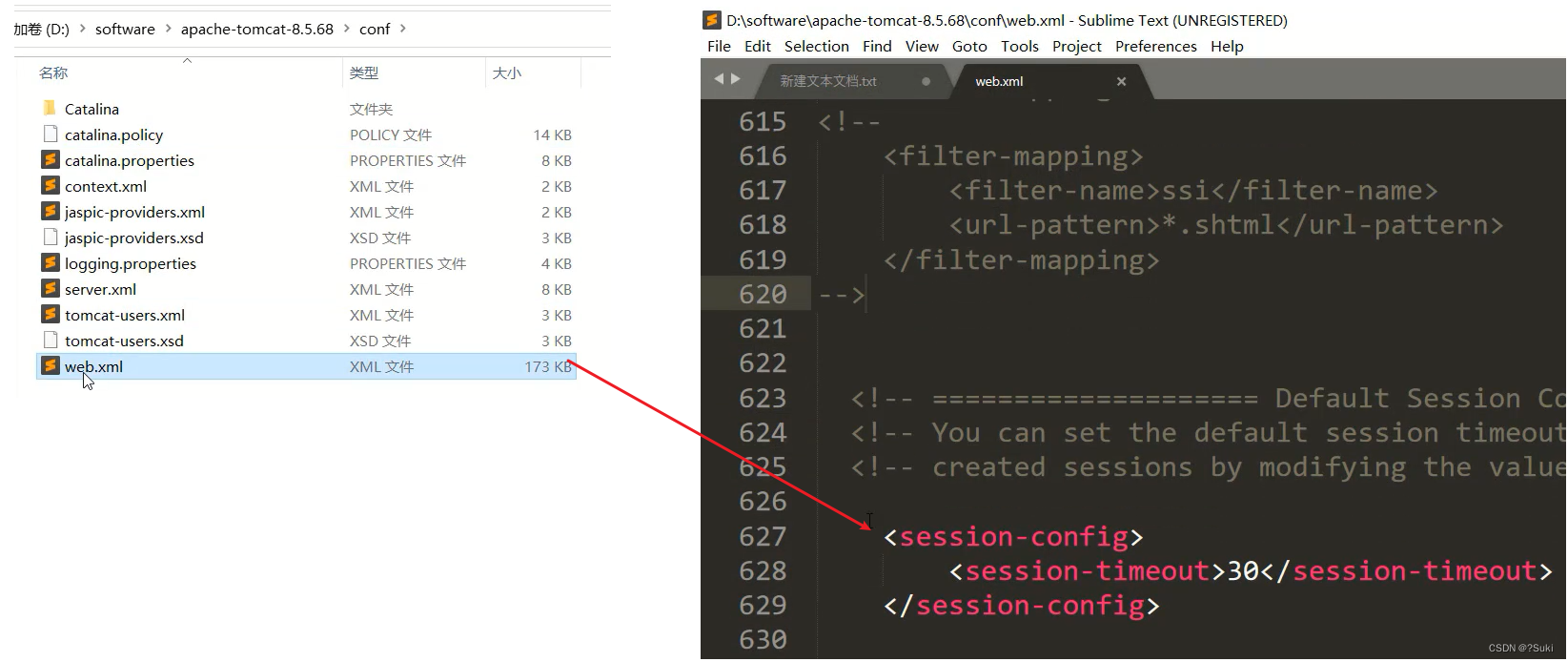 如果没有配置,默认是30分钟,默认值是在Tomcat的web.xml配置文件中写死的