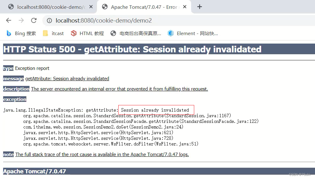 (5)访问http://localhost:8080/cookie-demo/demo2 查看是否能获取到session中的数据