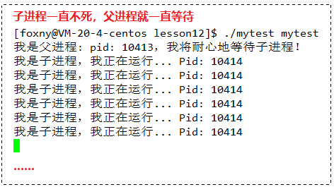 💬 代码演示:模拟异常退出的情况,让子进程一直跑,父进程一直等。