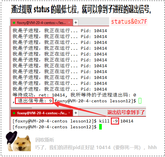 📌 重点:通过提取 status 的最低七位,就可以拿到子进程的退出信号。