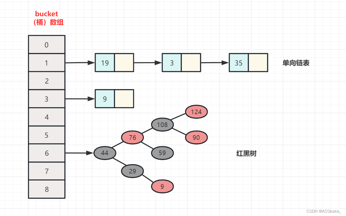 数组+单向链表/红黑树实现的。