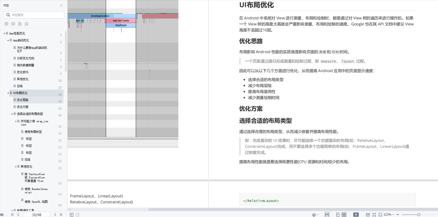};前段时间整理收集的关于Android性能优化的知识脑图总结和学习手册文档!既能够夯实底层原理、性能调优等核心技术点,又能够掌握普通开发者,难以触及的架构设计方法论。那你在工作中、团队里、面试时,也就拥有了同行难以复制的核心竞争力。需要完整版的朋友,可点击文末卡片或者点击这里!!