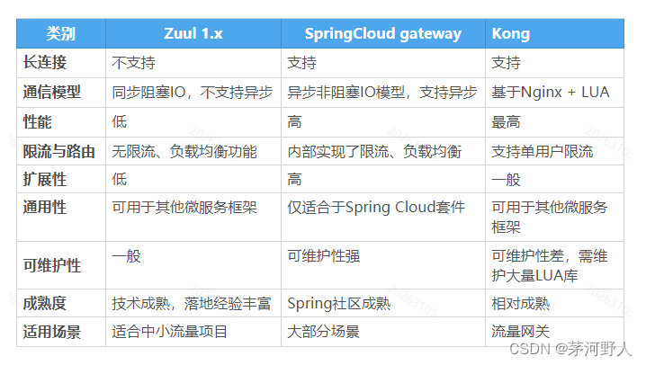主要网关对比选型: