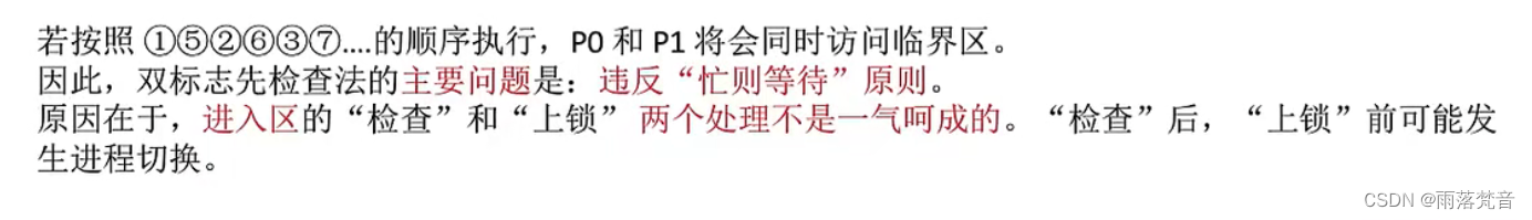 算法思想:双标志先检查法的改版。前一个算法的问题是先“检查”后“上锁”,但是这两个操作又无法一气呵成,因此导致了两个进程同时进入临界区的问题。因此,人们又想到先“上锁”后“检查”的方法,来避免上述问题。