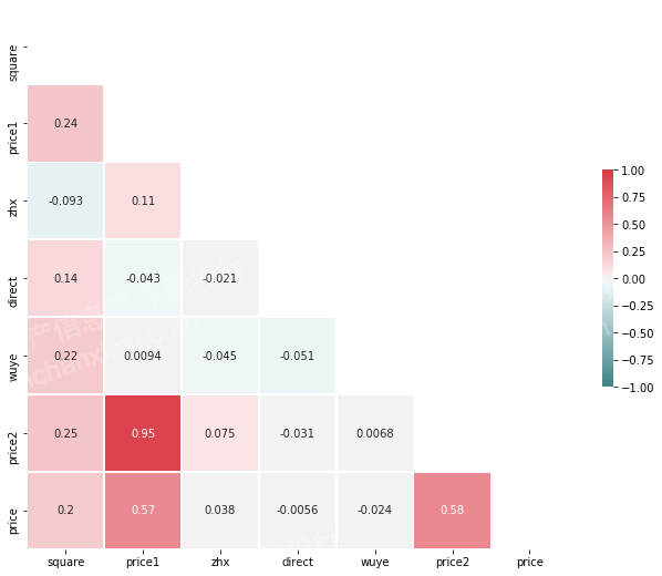 利用Python对以上变量与房地差价格之间的相关性进行检验可以得到: