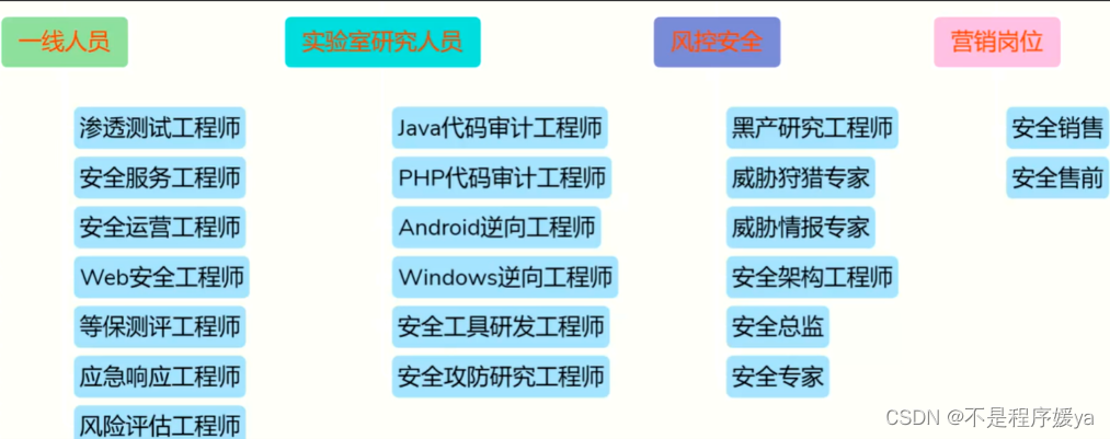 这个行业目前从事最多几个岗位,分别是安全运维,安全服务,安全研究