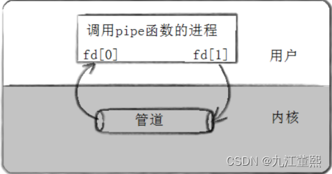 这里表示创建一个匿名管道,并返回了两个描述符,一个是管道的读取端描述符 fd[0],另一个是管道的写入端描述符 fd[1]。注意,这个匿名管道是特殊的文件,只存在于内存,不存于文件系统中。