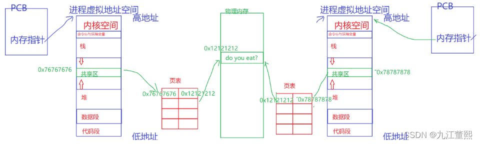 1.3不同的进程, 操作进程虚拟地址, 通过页表的映射, 就相当于操作同一块内存,从而完成了数据交换