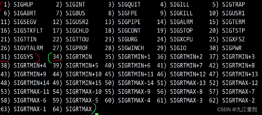 使用 kill -l 命令可以罗列信号