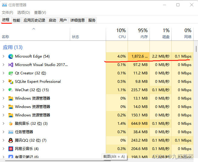 进程:其实进程就是运行起来的程序,程序运行起来需要被加载到内存中。进程和可执行文件很像(文件名.exe)->这就是可执行文件.但是他们又有所不同.可执行文件就像是静态的,躺在我们的硬盘中,但是,我们在任务管理器中可以明显的看到我们的进程是动态的,是在内存中不断被加载的.