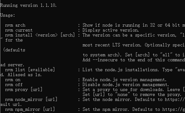 3.安装完后,打开cmd,输入nvm,出现以下内容就说明安装成功了