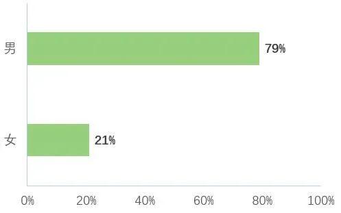 在程序员群体中,男性占比79%,女性占比21%,呈现出明显的性别不平衡现象。