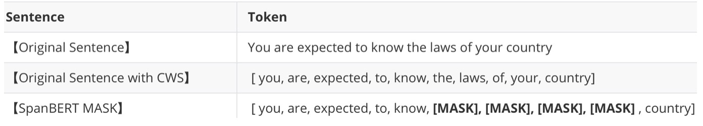 与BERT一样,mask机制仍然为:80%替换为[MASK],10%保持不变,10%用随机的token替换。但不用的是,span masking是span级别的,即同一个span里的所有tokens会是同一种mask。