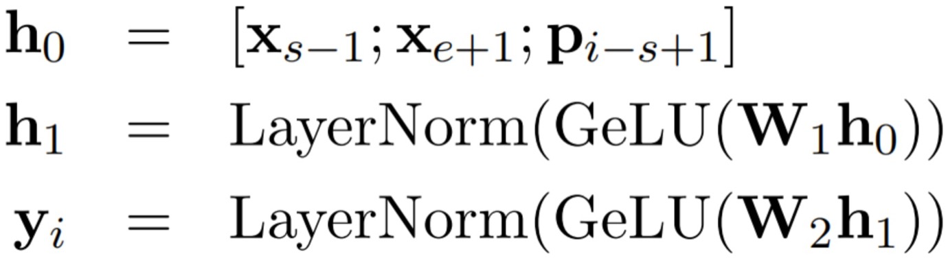 其中s表示span的起始位置,s-1表示的是span的左侧边界token;e表示的是span的结束位置,e+1表示的是span的右侧边界token,p表示的是位置信息。