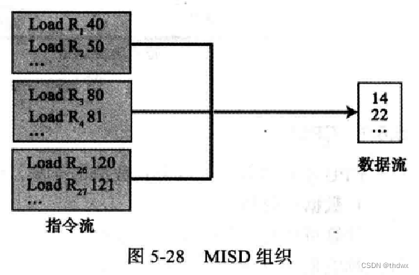 MISD组织(多指令流单数据流):是一个概念,从未被实现。