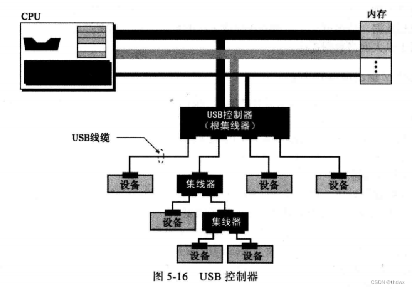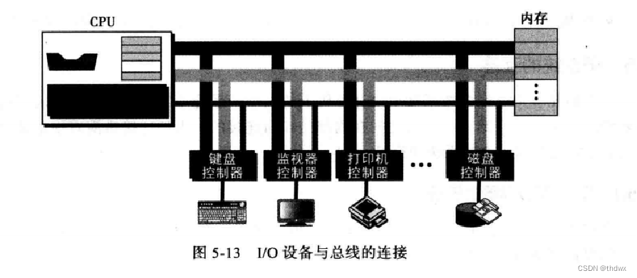 输入/输出设备不能直接与CPU和内存的总线连接,因为它们数据的本质不同,而且传输速度也比CPU和内存慢很多,所以必须要有控制器(接口)来将这些设备连接到总线上。