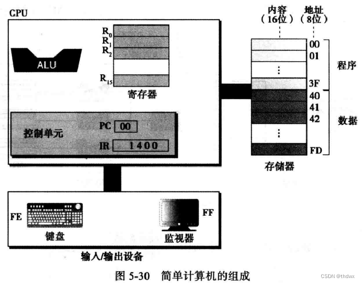 简单计算机包含三个部分:CPU、输入/输出子系统、主存储器。