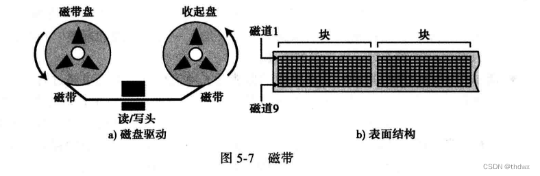 磁带:磁带用两个滚轮承接起来,当转动的磁带通过读/写磁头时,就可以通过磁头来读写磁带上的数据。
