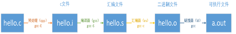 四个步骤并不是 gcc 独立完成的,而是在内部调用了其他工具,从而完成了整个工作流程: