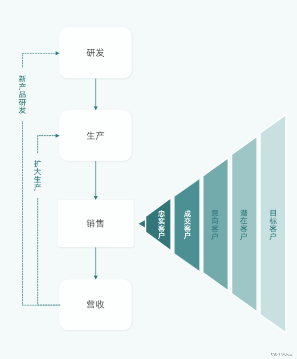 一般在企业业务流程中,CRM常作用于下图的销售前中后环节: