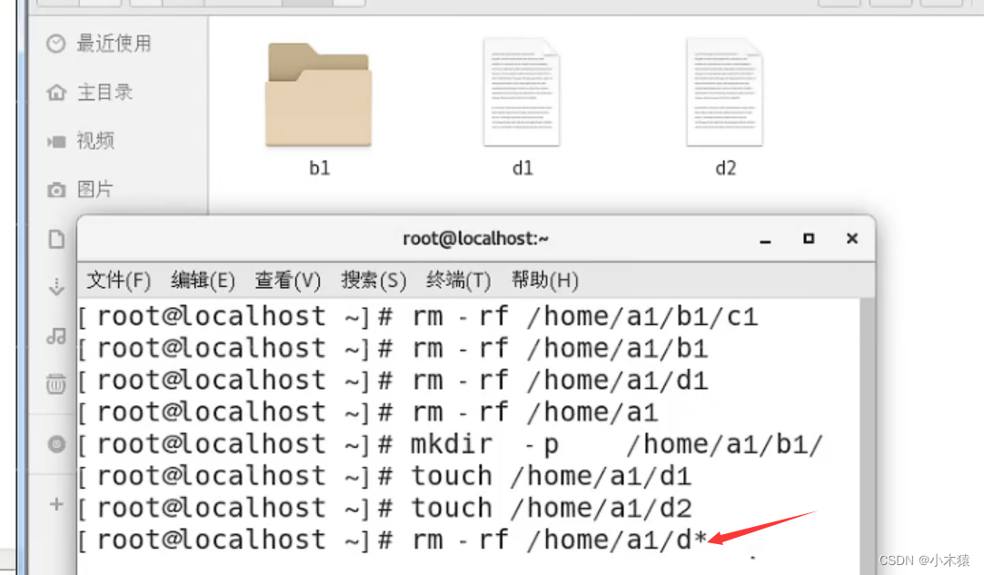 mv /home/a1/b1/c1/d1 /home/a1/b1/ 将d1移动到b1的文件夹下