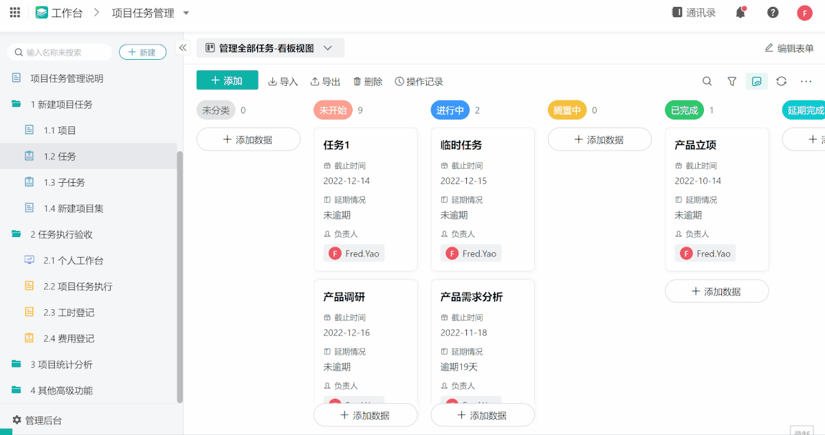 主要功能包括:项目制定、任务分配、资源管理、执行结果审核、看板分析、延期情况查询、进度和成本掌控等,支持多行业领域应用参考。并且支持“自定义”,企业可根据自身项目管理情况、自行调整修改应用。