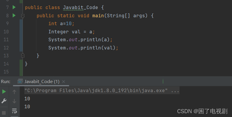 Integer是int基本数据类型的包装类,这里将int的值赋给Integer就是装包,结果也很明显输出的都是10,那他内部是怎么运行的呢?我们打开反编译来看一下。