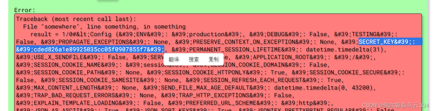 会发现后面的会正常执行,1/0#{{config}},查看配置信息,发现了密钥