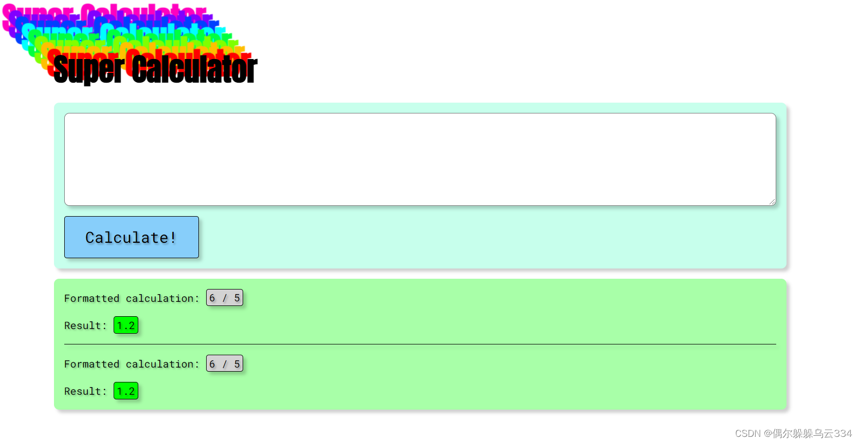 {"history":[{"code":"6 / 5"},{"code":"6 / 5"}]} 里面就是我们输入的东西并且执行了