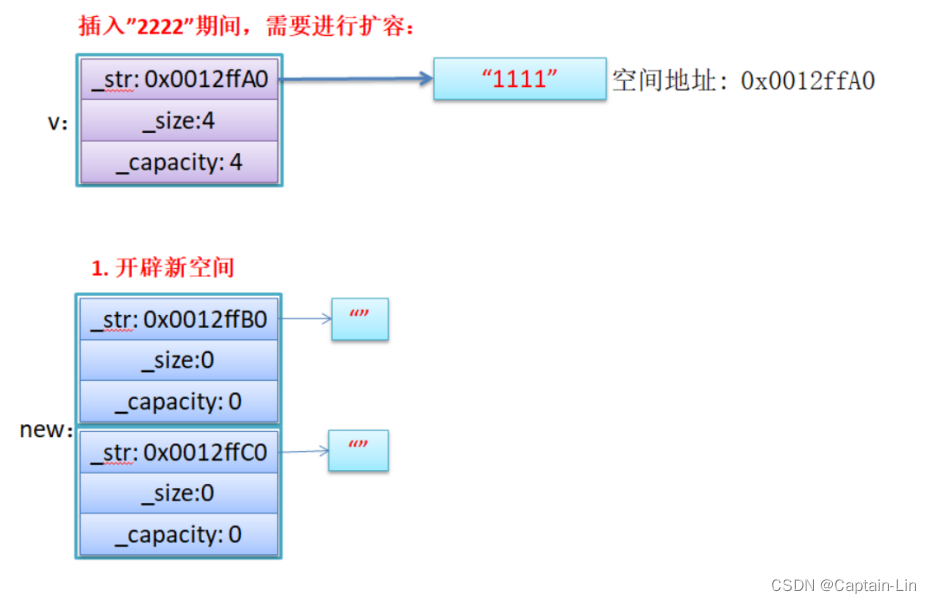 {templateclass vector{public:// Vector的迭代器是一个原生指针typedef T* iterator;typedef const T* const_iterator;///// 构造和销毁vector(): _start(nullptr), _finish(nullptr), _endOfStorage(nullptr){}vector(size_t n, const T& value = T()): _start(nullptr), _finish(nullptr), _endOfStorage(nullptr){reserve(n);while (n--){push_back(value);}}/** 理论上,提供了vector(size_t n, const T& value = T())之后* vector(int n, const T& value = T())就不需要提供了,但是对于:* vector v(10, 5);* 编译器在编译时,认为T已经被实例化为int,而10和5编译器会默认其为int类型* 就不会走vector(size_t n, const T& value = T())这个构造方法,* 最终选择的是:vector(InputIterator first, InputIterator last)[InputIterator - 输入迭代器]* 因为编译器觉得区间构造两个参数类型一致,因此编译器就会将InputIterator实例化为int* 但是10和5代表的意义根本不是一个区间(而是构建一个顺序表,其中包括10个5),编译时就报错了* 故需要增加该构造方法*/vector(int n, const T& value = T()): _start(new T[n]), _finish(_start + n), _endOfStorage(_finish){for (int i = 0; i < n; ++i){_start[i] = value;}}// 若使用iterator做迭代器,会导致初始化的迭代器区间[first,last)只能是vector的迭代器// 重新声明迭代器,迭代器区间[first,last)可以是任意容器的迭代器templatevector(InputIterator first, InputIterator last){while (first != last){push_back(*first);++first;}}vector(const vector& v): _start(nullptr), _finish(nullptr), _endOfStorage(nullptr){reserve(v.capacity());iterator it = begin();const_iterator vit = v.cbegin();while (vit != v.cend()){*it++ = *vit++;}_finish = it;}vector& operator=(vector v){swap(v);return *this;}~vector(){if (_start){delete[] _start;_start = _finish = _endOfStorage = nullptr;}}/// 迭代器相关iterator begin(){return _start;}iterator end(){return _finish;}const_iterator cbegin() const{return _start;}const_iterator cend() const{return _finish;}//// 容量相关size_t size() const{return _finish - _start;}size_t capacity() const{return _endOfStorage - _start;}bool empty() const{return _start == _finish;}void reserve(size_t n){if (n > capacity()){size_t oldSize = size();// 1. 开辟新空间T* tmp = new T[n];// 2. 拷贝元素// 这里直接使用memcpy会有问题吗?同学们思考下//if (_start)// memcpy(tmp, _start, sizeof(T)*size);if (_start){for (size_t i = 0; i < oldSize; ++i)tmp[i] = _start[i];// 3. 释放旧空间delete[] _start;}_start = tmp;_finish = _start + oldSize;_endOfStorage = _start + n;}}void resize(size_t n, const T& value = T()){// 1.如果n小于当前的size,则数据个数缩小到nif (n <= size()){_finish = _start + n;return;}// 2.空间不够则增容if (n > capacity())reserve(n);// 3.将size扩大到niterator it = _finish;_finish = _start + n;while (it != _finish){*it = value;++it;}}///// 元素访问T& operator[](size_t pos){assert(pos < size());return _start[pos];}const T& operator[](size_t pos)const{assert(pos < size());return _start[pos];}T& front(){return *_start;}const T& front()const{return *_start;}T& back(){return *(_finish - 1);}const T& back()const{return *(_finish - 1);}/// vector的修改操作void push_back(const T& x){insert(end(), x);}void pop_back(){erase(end() - 1);}void swap(vector& v){std::swap(_start, v._start);std::swap(_finish, v._finish);std::swap(_endOfStorage, v._endOfStorage);}iterator insert(iterator pos, const T& x){assert(pos <= _finish);// 空间不够先进行增容if (_finish == _endOfStorage){//size_t size = size();size_t newCapacity = (0 == capacity()) ? 1 : capacity() * 2;reserve(newCapacity);// 如果发生了增容,需要重置pospos = _start + size();}iterator end = _finish - 1;while (end >= pos){*(end + 1) = *end;--end;}*pos = x;++_finish;return pos;}// 返回删除数据的下一个数据// 方便解决:一边遍历一边删除的迭代器失效问题iterator erase(iterator pos){// 挪动数据进行删除iterator begin = pos + 1;while (begin != _finish) {*(begin - 1) = *begin;++begin;}--_finish;return pos;}private:iterator _start; // 指向数据块的开始iterator _finish; // 指向有效数据的尾iterator _endOfStorage; // 指向存储容量的尾};